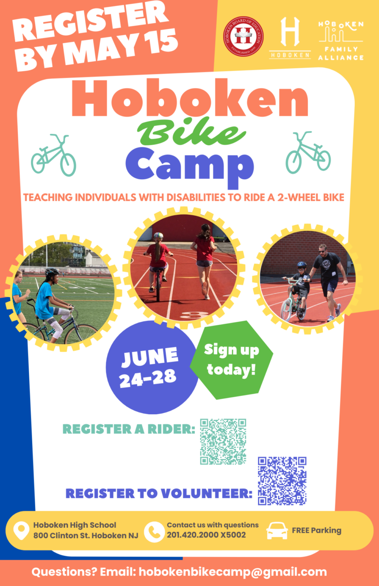Hoboken was the first city in New Jersey to host a camp in 2012 and four other N.J. cities have since followed. Riders use adaptive equipment for the first three days but need to have their own bike by Thursday to transition successfully to their own bicycle. It’s important that riders continue to ride once the camp is complete to continue practicing and applying their newly-learned skills.